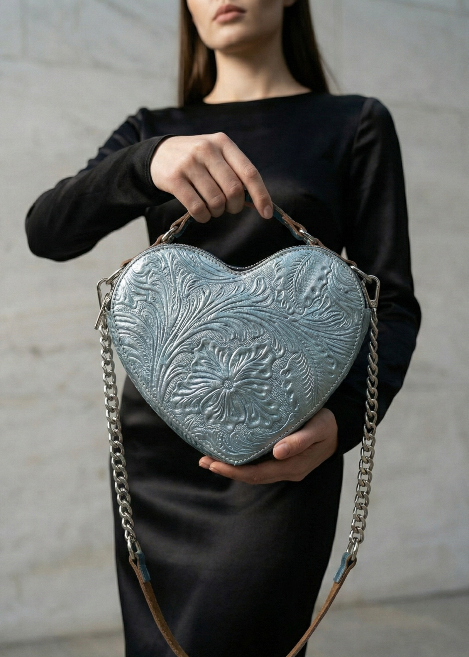 Bolsa Corazón Azul Acero Cadena
